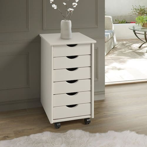 Com design funcional e aparência sofisticada, o Gaveteiro Simon é perfeito para manter tudo no lugar com muito mais estilo. Produzido de madeira maciça de pinus de origem sustentável, é resistente e feito para durar. Suas gavetas amplas oferecem ótimo espaço interno, ideal para acessórios, documentos ou objetos do dia a dia. O acabamento Branco da ao ambiente um toque elegante. Versátil o gaveteiro Simon se encaixa bem em quartos, escritórios ou closets, trazendo organização e beleza em um só móvel. Possui Portas: Não Possui Prateleiras: Não Possui Rodízio: Sim Acabamento da Gaveta: Pintura UV Acompanha Manual de Instalação: Sim Altura dos Pés: 4,5 cm Ambiente Principal: Quarto codigo_ean: 7900288161062 Complexidade da Montagem: Baixa: pode ser montado por uma pessoa sozinha Composição: 80% Madeira Maciça e 20% MDF Cor: Branco Cor do Produto: Branco Escala de Brilho: Fosco Escala de Brilho da Gaveta: Fosco Gaveta com Chave: Não Informações Complementares: Carga somada das 6 gavetas Itens Inclusos: 1 Gaveteiro e Ferragens Linha ou Coleção: Simon Manual de Montagem e Instalação: https://product-hub-prd.madeiramadeira.com.br/542928605/documents/359bfd01-b8e9-4b67-82a1-25f13e5651a02957843587817483761577229.pdf Marca: FAMACHIQ Material da Gaveta: Madeira Maciça Material dos Pés: Plástico Material Principal: Madeira Maciça Necessita Montagem: Sim Origem do Produto: Nacional Pés Reguláveis: Não Peso: 10 kg Peso Máximo por Gaveta: 5 kg Possui Espelho: Não Possui Possui Pés: 04 Possui Vidro: Não Quantidade de Rodízios com Trava: 04 Recomendações de Uso, Manutenção e Limpeza: Flanela com lustra móveis Rodízio com Trava: Sim Sapatas Niveladoras: Não Sistema de Montagem: Parafusos, cavilhas e cola Suporta Até (kg): 30 kg Tipo de Corrediça da Gaveta: Madeira Tipo de Madeira Maciça: Pinus Tipo de Madeira Maciça da Gaveta: Pinus Tipo de Puxador da Gaveta: Não Possui - Abertura por Fecho Toque Marca: Não Informado