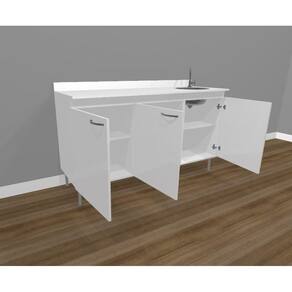 - Disposição: módulo porta/módulo porta/módulo pia;