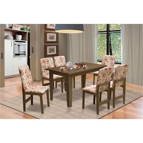 Mesa de Jantar Dobuê Miami com 6 Cadeiras Roma - Castanho/Vermelho Floral