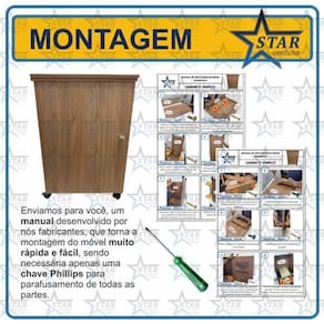 Itens inclusos: - gabinete completo o produto vai desmontado ; - manual de montagem passo a passo detalhado; - kit de rodinhas com trava; - porta cone de linha exclusivo - star costura; - mini catálogo - star costura - com cupom de desconto para próxima compra. Marca: Star Costura