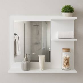Com design funcional e multiuso, ela é ideal para banheiros, lavabos ou qualquer ambiente que precise de um toque de organização com estilo. Suas prateleiras oferecem espaço para itens decorativos ou de uso diário, mantendo tudo à mão com charme e eficiência.