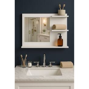 Com design funcional e multiuso, ela é ideal para banheiros, lavabos ou qualquer ambiente que precise de um toque de organização com estilo. Suas prateleiras oferecem espaço para itens decorativos ou de uso diário, mantendo tudo à mão com charme e eficiência.