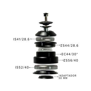 - Indicado para quadro over 44mm com entrada para garfo tapered(cônico). - Ahead Set. - Movimento por rolamento. - Tapered Integrada/Semi Integrada. - Mega Over Semi Integrada. - Externa(com Adaptador para 30mm). - Semi Integrada: Tapered 1-1/8” (ZS44/28.6) / 1.5” (ZS56/40) - Integrada: Tapered 1-1/8” (IS41/28.6) / 1.5” (IS52/40) - Mega Over: 1-1/8” | copo superior semi integrado (ZS44/28.6) e copo inferior externo (EC44/30*) usando o adaptador para 30 mm