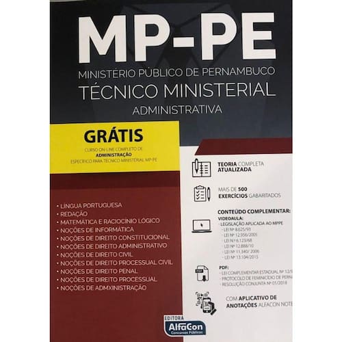 Fazer parte do serviço público é o objetivo de muitas pessoas. Por esse motivo, os processos seletivos relacionados a essa area costumam ser muito concorridos. Nesse sentido, a obra Técnico Ministerial Administrativa - MPPE reúne todos os conteúdos cobrados no ultimo edital do concurso. Na elaboração deste material, a Editora AlfaCon teve o cuidado de trazer as indicações mais importantes dos tópicos que fazem parte do conteúdo programático das disciplinas abordadas. Alem disso, durante a explanação dos conteúdos, o estudante encontrará dicas essenciais à sua compreensão, e a cada capítulo constam exercícios gabaritados, provenientes de concursos anteriores. Toda essa disposição de assuntos foi pensada para auxiliar o concurseiro na melhor compreensao e fixação do conteúdo.