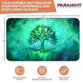 - ? Design durável — Jogue inúmeras partidas com seu tapete de jogo TCG pesado. Seu tapete tem bordas antidesgaste que resistem ao desgaste. Carregue-o em sua caixa durável ou atualize para um Paramint MatShield!