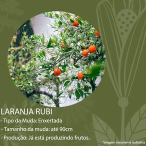 Laranja Rubi A laranja Rubi tem a sua casca em alaranjada e espessura média, e textura firme, sabor intermediário entre a laranja lima e a laranja pêra, sendo considerada uma variedade doce mas não enjoativa. Por dentro, a sua polpa é laranja, sendo a responsável por seu tom de laranja intenso. A muda é enxertada e está produzindo
