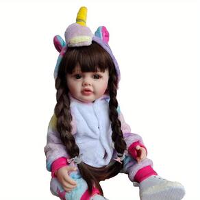 Tamaño: Aproximadamente 55 cm (22 pulgadas) Peso de la muñeca con ropa: alrededor de 1.4 kg Estructura: Muñeca de niña con cuerpo entero de vinilo suave. Las extremidades de la muñeca son articuladas. Puede sentarse y acostarse, pero no puede pararse, hablar ni beber. Puede bañarse en el agua. Ojos: Ojos acrílicos de alta calidad, sin parpadeo. Cabello: Peluca pegada. Aplicaciones: Regalo de cumpleaños, obsequio de Navidad, compañera de juegos para niños, acompañante para abuelos y colección de muñecas. Edad recomendada: 3 años en adelante. Incluye: - Muñeca terminada * 1 - Set de ropa * 1 - Chupete * 1 - Biberón * 1 - Tarjeta de nacimiento * 1 Descripción detallada: - Diseño ultra realista de recién nacido: Con 55 cm de largo, esta muñeca reborn refleja las proporciones delicadas de un bebé real. Cuerpo completo de vinilo suave con extremidades articuladas que permiten posiciones naturales. Venas pintadas a mano, uñas semicirculares y expresión dormida rosada que aportan un realismo sorprendente. - Compañera emocional: Más que una muñeca, es una fuente de consuelo y alegría. Sus rasgos realistas y expresión serena inspiran cuidado, ofreciendo apoyo emocional para niños, adultos mayores o cualquier persona que busque alivio al estrés mediante el juego afectivo. - Regalo perfecto para múltiples ocasiones: Ideal para cumpleaños, Navidad o juegos de rol. Perfecta para niñas, coleccionistas, fotógrafos o abuelos. Compatible con ropa y accesorios de tamaño recién nacido: pañales, cochecitos, entre otros, para un juego imaginativo inmersivo. - Experiencia real de bebé: Desde su cuerpo ponderado para abrazar hasta la capacidad de usar ropa real de bebé, cada detalle fomenta la autenticidad. A los niños les encanta llevarla a todas partes y los coleccionistas la valoran como una obra maestra para exhibir. Incluye certificado de nacimiento para personalización. - Detalles fieles a la vida real: Esta muñeca realista está diseñada con precisión para capturar la calidez e inocencia de un bebé recién nacido. Venas delicadas, pliegues suaves y arrugas finas pintadas a mano crean texturas realistas en la piel, haciendo que cada detalle parezca natural.