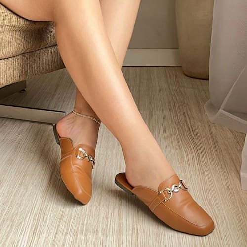 Detalhes em Elos Dourados dá um toque de sofisticação e glamour que adiciona um charme único à mule