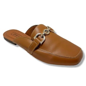 Mule Feminino Comfort Bico Quadrado Detalhe Elos Dourados - 35 - Marrom Cacau