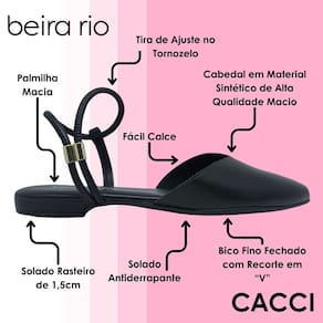 O Mule Rasteiro Feminino Slingback Beira Rio é a escolha ideal para quem procura elegância sem abrir mão do conforto. Seu design moderno com bico fino fechado e recorte em “V” valoriza a silhueta dos pés e confere um toque de sofisticação ao visual, tornando-o perfeito para acompanhar produções casuais ou mais refinadas com leveza e charme.