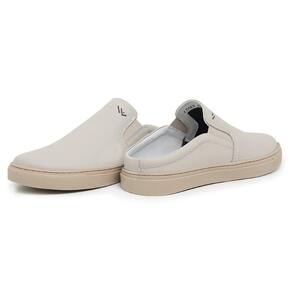 Mule Slip On Casual Couro Masculino Solado Borracha Palmilha Macia Gel Anti-Impacto - 40 - Bege Claro