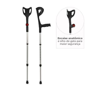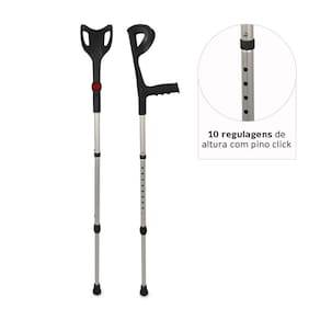 MULETA CANADENSE DESMONTÁVEL COM MOLA - D6 Estrutura em alumínio anodizado fosco, apoio de braço e anel antirruído em polipropileno, pé ajustável com tubo em alumínio e mola de impulsão em aço carbono, ponteira em borracha. A Muleta D6 é leve, pesando cerca de 500g, e possui estrutura com 10 níveis de regulagem de altura inferior, garantindo maior adaptabilidade ao usuário. Equipada com sistema antirruído, apoio de mão com ranhuras para mais segurança e estrutura desmontável em três partes, facilita o armazenamento. Fabricada em alumínio antiferrugem, suporta até 130 kg. Além disso, possui uma mola que transforma o peso exercido no apoio em impulso, tornando o uso mais leve e melhorando a mobilidade. Preço por unidade Comprimento da Manopla 16cm Largura da Manopla 11,5cm Altura Minima do Produto 100cm Altura Maxima do Produto 124cm Capacidade Peso 130kg Cor Preta Anvisa 80795950043 Garantia 3 meses