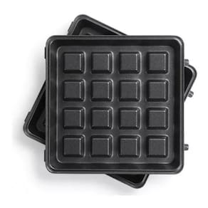 Multi Maker Holstein Housewares para waffles, sanduíches e panquecas com placas intercambiáveis, corpo em aço inoxidável e design vertical para economia de espaço.Funciona como grill