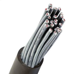 Multicabos 20 Vias com termoplástico resistente a altas temperaturas e baixa retração durante a solda. Produto oferece espaguete termoplástico flexível, bitola de 24 AWG (19,00mm) e condutor em cobre estanhado. Cobertura em PVC emborrachado de alta resistência mecânica, gravado metro a metro, para aumentar a segurança em locais com grande circulação.