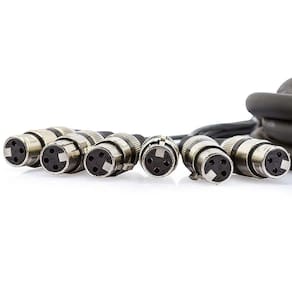 Multicabos com Conectores XLR 8 Vias da Cirilo Cabos. Este produto vai te auxiliar na organização de palco e distribuição dos canais para instrumentos e músicos. A medusa de som com seis vias é um ponto de ancoragem de palco que vai reduzir o fluxo de cabos levados até a técnica. Conecte até 8 equipamentos com tranquilidade.
