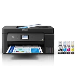 - Conteúdo da embalagem: Multifuncional Epson EcoTank L14150, 4 garrafas de tinta de inicialização (preta, ciano, magenta e amarela), Cabo de alimentação, Cabo USB, Cabo de FAX, CD com drivers (Windows), Documentação e garantia
