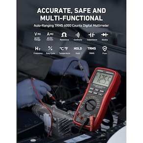 O multímetro AstroAI True RMS foi projetado para ser utilizado com segurança e precisão por profissionais em um ambiente comercial ou DIY de fim de semana que precisam de um pouco mais de utilidade de energia de seu multímetro digital padrão. É fácil e seguro de operar com recursos avançados construídos para medir aparentemente tudo. Execute testes em diodos e transistores enquanto é capaz de medir tensão, corrente, resistência, continuidade, capacitância e frequência, tudo em um dispositivo. - Multímetro digital versátil – mede com precisão a corrente CA/CC, tensão CA/CC, capacitância, frequência, ciclo de trabalho, resistência, diodo, continuidade e temperatura. - Design atencioso – suporte de retenção de dados, tela LCD retroiluminada, desligamento automático e suporte facilitam o processo de medições. O nível profissional se reflete em alguns recursos, incluindo capacidade de alcance automático e True RMS para medir corrente CA e tensão. - Adequado para muitas ocasiões – Este multímetro é um parceiro de ouro para ajudar a solucionar uma variedade de problemas elétricos automotivos e domésticos com segurança e precisão. - Garanta a segurança - O fusível duplo de cerâmica é antiqueima e protege contra sobrecarga, e será mais seguro e confiável; os tubos de fusíveis de cerâmica à prova de explosão F600mA/250V e F10A/250V podem proteger o multímetro de forma eficaz. - Dicas adicionais - tire a tampa antes de usar os cabos de teste. Verifique o manual para obter mais informações de uso.