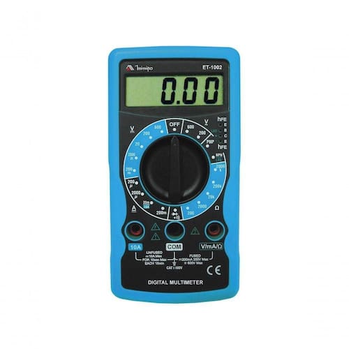 Multímetro Digital 3 1/2d - 10a Et-1002 O projeto da estrutura adota um holster protetor que se molda ao gabinete dos instrumentos, diferente dos padrões convencionais. Como característica adicional apresenta indicador de bateria fraca. Display: 3 Dígitos (2000 Contagens). Indicação de Sobrefaixa: Mostra apenas o dígito mais significativo (1). Mudança de Faixa: Manual. Indicador de Bateria Fraca: é mostrado no display. Taxa de Amostragem: aproximadamente 2 ~ 3 vezes por segundo. Ambiente de Operação: 0C a 40C, RH