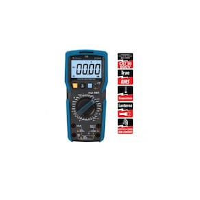 Diferencia-se por ser um multímetro digital com display de 6000 contagens com iluminação de fundo (backlight) Faz medidas de tensão DC / (AC RMS), corrente DC / (AC RMS), resistência, capacitância, frequência de rede, testes de diodo, temperatura, continuidade e hFE de transistor Como características adicionais apresenta as funções True RMS, Auto Power Off, indicador de bateria fraca, função NCV e identificação de Linha Viva. CARACTERÍSTICAS Display LCD de 3 5/6 Dígitos, 6000 contagens; Indicação de Bateria Fraca: O display exibe o símbolo “ ”; Indicação de Sobrefaixa: O display indicará o símbolo “OL”; Taxa de atualização: Aprox. 2~3 vezes por segundo; Mudança de Faixa: Manual/Automática; Indicador de Polaridade: Automático; Teste de Transistor (hFE); Função Data Hold; Função Auto Power OFF; Sensor Crepuscular; Lanterna; Indicador Visual de Estado por LED indicativo; Medidas de Temperatura; Identificação de Linha viva; Detector de Tensão sem Contato; True-RMS AC; Função Relativo; Ambiente: Operação: 0°C ~ 40°C; Armazenamento: -20°C ~ 60°C; Umidade Relativa: 0°C ~ 30°C =75%, 30°C ~ 40°C =50% Altitude: Operação e Armazenamento: até 2000 metros; Segurança/Conformidade: de acordo com a IEC61010-1, Categoria de sobretensão CAT III 600V e dupla isolação; Proteção: Fusível no terminal mA/µA - 630mA/250V; Fusível no terminal de 20A - 20A/250V; Grau de poluição: 2; Alimentação: 4 pilhas de1,5V tipo AAA; Peso: Aprox. 345 gramas (Incluindo bateria);