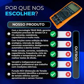 O multímetro digital DT-9205A a melhor combinação de funções e confiabilidade do mercado. Seja para ou pessoal, esta ferramenta essencial se tornará um aliado indispensável em suas medições elétricas. A precisão, praticidade e multifuncionalidade que você precisa, tudo em um único aparelho.