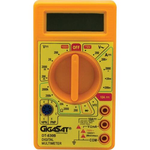 Multimetro Digital Dt-830b 2m Gigasat Instrumento digital portátil da linha hobby Display LCD de 3 1/2 dígitos Realiza medidas de tensão DC e AC, corrente DC, resistência e testes de diodo e transistor hFE Não frágil. Marca: Não Informado Ean: 7898945044707