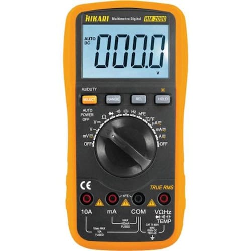 O Hikari HM-2090 está equipado com uma gama abrangente de funcionalidades, incluindo medições de tensão DC e AC, corrente, resistência, capacitância, frequência e temperatura, além da capacidade de realizar testes de diodo e continuidade. Suas funções avançadas como a tecnologia TRUE RMS e a mudança automática de faixa asseguram medições precisas a cada uso, facilitando o seu trabalho no dia a dia.