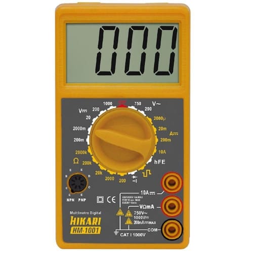 Multímetro Digital Hm-1001 - 21n240 - Hikari Multímetro Digital HM-1001 - 21N240 - HIKARI Descrição: Multímetro Digital Cat. I 1000V HM-1001 Hikari é a ferramenta ideal para estudantes, hobistas e profissionais que realizam trabalhos em bancadas medindo circuitos eletrônicos e ambientes monofásicos protegidos com precisão e segurança. Com uma ampla variedade de funções, incluindo medição de tensão, corrente e resistência, este multímetro possui um gerador de onda quadrada, um soquete para transistor PNP e NPN aonde é possível realizar Teste hFE, contém também Teste de Continuidade com BIP e Teste de Diodo, proporcionando agilidade e precisão nas medições realizadas. Em conformidade com a IEC 61010-1, categoria de sobretensão Cat. I 1000V e com Dupla Isolação, este multímetro digital garante segurança ao realizar medições em sistemas elétricos de baixa tensão e oferece recursos avançados em um formato compacto.