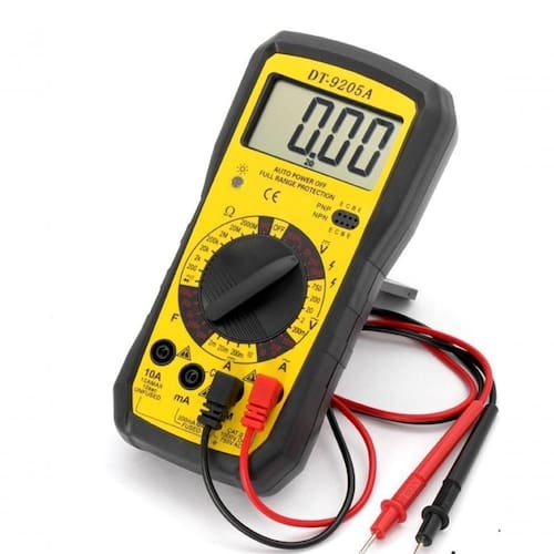 O Multímetro é um instrumento digital portátil, com fusível de auto restauração, teste de linha viva, holster protetor, LCD de 3 dígitos com iluminação de fundo, de acordo com a categoria II de segurança, congelamento de leitura, desligamento automático e mudança de faixa manual. Realiza medidas de tensão DC e AC, corrente DC e AC, resistência e testes de linha viva, hFE de transístor, díodo e continuidade.