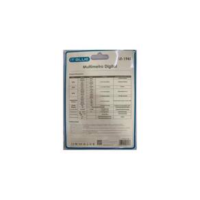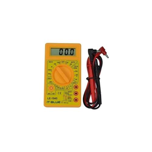 Multímetro Digital Portátil IT-BLUE LE-1945 O multímetro digital é um equipamento delicado e requer o manuseio de um operador habilitado tecnicamente, caso contrário, poderá ser danificado. Portanto não serão considerados, mesmo dentro do prazo de validade da , os defeitos causados pelo mau uso. Especificações - Uso Interno. - Alimentação: 1 x 9V Inclusa - Dimensões: 126 A x 70 L x 24 P mm. - Peso: Aproximadamente 150g. Dados Técnicos - Dimensões: 126 A x 70 L x 24 P mm. - Peso: Aproximadamente 150g. Itens incluso: 1 Multímetro Digital 1 Par Ponta de teste Marca: Não Informado