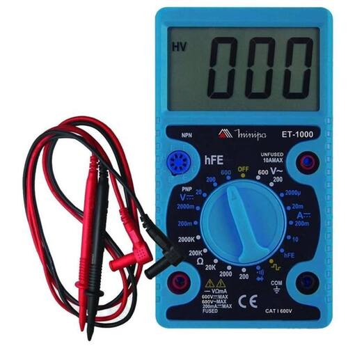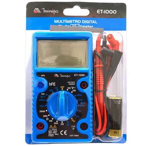 Multimetro digital minipa - diferencia-se por ser pequeno, portátil e possuir display de 3 1/2 dígitos. - o instrumento pode ser Utilizado em medidas de tensão dc / ac, corrente dc, resistência, testes de diodo, continuidade, hfe detransistor e também possui a função de gerador de onda quadrada. - a precisão é especificada como % leitura + número de dígitos para temperatura 23c 5c e umidade relativa 75%. A especificação é valida para 5% a 100% da faixa de medida. Especificações: - display: 3 1 / 2 dígitos, 2000 contagens; - taxa de atualização: aproximadamente 2 vezes por segundo; - indicação de sobrefaixa: 1; - indicação de polaridade: automática; - indicação de bateria fraca: - mudança de faixa manual; - teste de continuidade, diodo, hfe de transistor; - gerador de onda quadrada; - altitude de operação: abaixo de 2000m; - ambiente de operação: 0c40c 32f a 104f , rh - tensão dc: 200m/2000m/20/200/600v - tensão ac: 200/600v - resistência: 200/2000/20k/200k/2000ko - corrente dc: 200/2000/20m/200m/10a Itens que acompanham: - 1. Manual de instruções; - 2. Pontas de prova 1 par . -1 bateria Marca: Não Informado