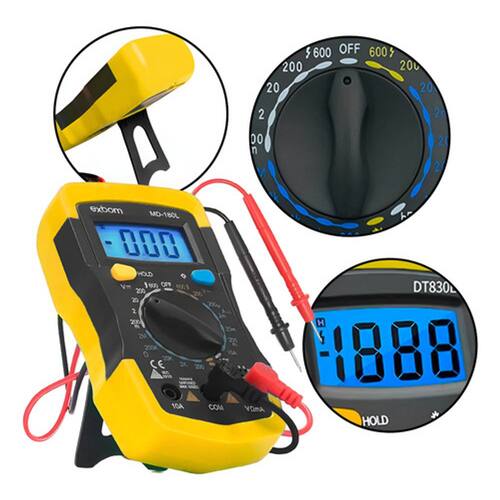 O Multímetro Digital Profissional é a ferramenta ideal para quem busca precisão e versatilidade em medições elétricas e eletrônicas. Com um display LCD iluminado, você obterá leituras claras mesmo em ambientes com baixa luminosidade. Medindo tensão AC e DC, corrente AC e DC, resistência, além de testar diodos e transistores, este multímetro garante resultados confiáveis para profissionais e entusiastas da área. Suas tomadas seguras suportam até 10A, e o interruptor de faixa permite uma seleção rápida entre os modos de medição, facilitando o uso. O soquete hFE é perfeito para testes de transistores, tornando-o um aliado indispensável no seu dia a dia. Compacto e leve, é fácil de transportar, sendo a escolha certa para uso em casa, no trabalho ou em campo.