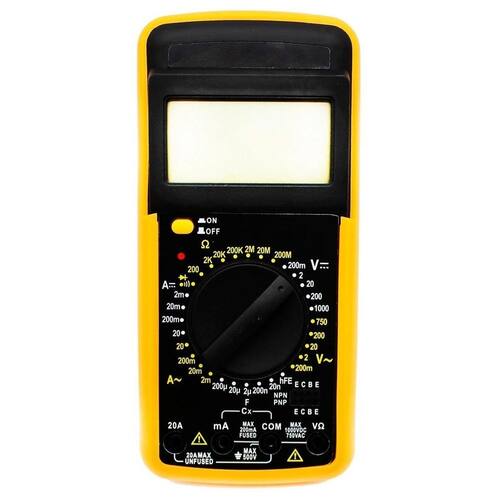 produto multifuncional com ampla utilização como oficinas em geral, auto elétricos ou até mesmo em residencias, pois é um instrumentos muito utilizado na pesquisa de defeitos em redes, aparelhos eletro-eletrônicos, devido à sua simplicidade de uso e portabilidade. Sua característica básica é a conversão dos sinais analógicos de entrada em dados digitais, sendo esta conversão realizada por circuitos eletrônicos e reproduzidas em seu display visor de lcd. Especificação técnica: