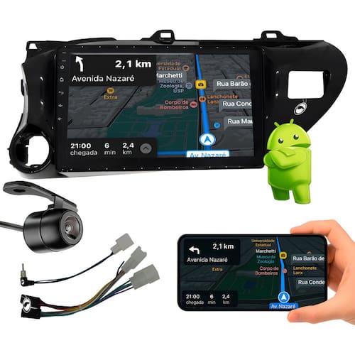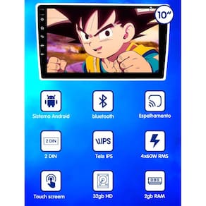 ESPECIFICAÇÕES TÉCNICAS: - Tela 10" full touch 2 DIN - IPS Touchscreen; - Resolução 1024x600; - Sistema Operacional Android via Wifi; - Baixa Aplicativos Através Da Play Store; - CarPlay e AndroidAuto Com ou Sem Fio; - Processador ARMv7; - 2 Gb De Memória Ram; - 32 Gb De Memória Interna; - GPS/USB/FM; - Conectividade: Bluetooth, Wi-Fi, GPS; - Navegador GPS; - Potência: 4 Canais de 50W 4omhs; - 1 Entrada para Câmera de Ré; - 1 Entrada de áudio e vídeo; - 1 Saída de áudio e Vídeo;