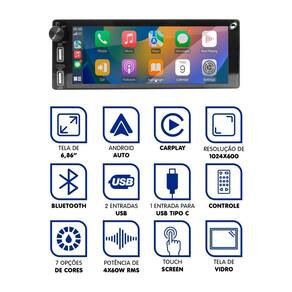 Descrição: O ht-2693ca é uma central multimídia mp5 desenvolvida para oferecer uma experiência de som e conectividade avançada com praticidade no seu veículo. Com tela de vidro de 6,86'' sensível ao toque ips full touch e resolução de 1024 600, combina interatividade moderna com visual elegante. Ideal para quem busca uma interface tátil eficiente, design sofisticado e recursos completos para o dia a dia. Características: - tela interativa de alta qualidade: vidro de 6,86'' com painel ips full touch e resolução 1024 600; - potência sonora eficiente: 4 canais de 60 w rms, garantindo áudio nítido e equilibrado; - iluminação personalizável: botões laterais em 7 cores; - conectividade versátil: bluetooth para chamadas e músicas, 2 entradas usb música e carregamento e uma entrada usb tipo c, espelhamento com carplay e android auto sem cabo; - recursos multimídia: entrada de vídeo, entrada para câmera de ré, 2 saídas av; - controle intuitivo: compatível com comandos no volante swc , com memória para até 10 funções; - praticidade: controle remoto incluso para operação à distância. Especificações técnicas: - modelo: ht-2693ca; - tela: vidro de 6,86'' ips full touch resolução 1024 600; - dimensões: consulte as imagens do anúncio; - potência de saída: 460 w rms; - conectividade: bluetooth 2 usb / 1 usb tipo c carplay sem fio android auto sem fio entrada de vídeo entrada para câmera de ré 2 saídas av; - controle remoto: incluso; - suporte a comandos no volante swc : até 10 funções configuráveis. : - 1 ano de do fabricante. - a não cobre erros de instalação ou mau uso. Conteúdo da embalagem: - 1 multimídia h-tech ht-2693ca; - 1 controle remoto; - 1 par de chicotes de ligação; - 1 câmera de ré. No grupo carrosomshop pepe parts, entendemos a paixão que os motoristas têm pelos seus veículos. É por isso que nos dedicamos a fornecer os melhores acessórios e peças para melhorar seu carro e tornar cada viagem ainda mais emocionante. Explore nossa loja e descubra uma variedade de produtos automotivos que vão desde multimídias, molduras de painel, alto falante, etc até peças de reposição essenciais. Descubra o que você precisa para elevar seu veículo a um novo patamar Junte-se a nós e experimente o compromisso do grupo carrosomshop pepe parts com a qualidade e a satisfação do cliente. Estamos ansiosos para atender às suas necessidades automotivas com produtos especializados e atendimento excepcional. Garanta a sua multimídia agora e dirija com segurança e conforto. Homologação Anatel: 112572013224 Marca: Não Informado