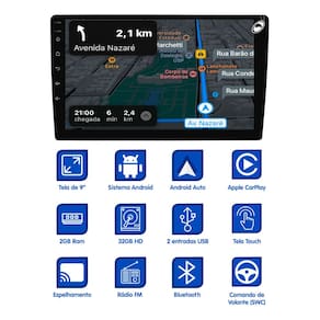 DESCRIÇÃO MULTIMÍDIA: Projetado para aprimorar sua experiência enquanto dirige, a multimídia com tela de 9"oferece uma ampla gama de recursos e entretenimento de alta qualidade. Combinando tecnologia avançada com simplicidade de uso, esta multimídia integra várias funções, como Bluetooth para músicas e ligações telefônicas, espelhamento para que você use os aplicativos do smartphone com mais conforto, 2 entradas USB, compatibilidade com Spotify e muito mais. Além disso, conta com sistema Android para você baixar apps direto da tela do seu multimídia. Torne suas viagens muito mais seguras e divertidas. Você não vai querer sair do carro!