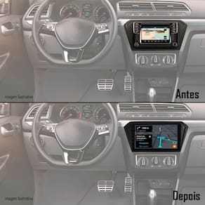 CONTEÚDO DA EMBALAGEM: - 1 Multimídia 9" Polegadas; - 1 Interface Comando de volante - 1 Câmera de Ré; - 1 Moldura de Painel 2 Din Preto OU Black Piano; - Chicote de Ligação (multimídia); - Manual.