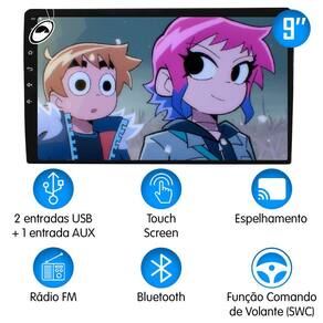 - Tela digital full touch screen capacitiva de 9" polegadas com resolução HD de 1024 x 600P;