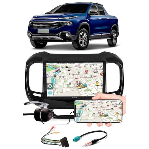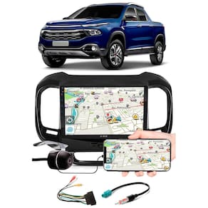 KIT COMBO MULTIMÍDIA 9" POLEGADAS + MOLDURA 2 DIN + INTERFACE COMANDO DE VOLANTE + CHICOTE LIGAÇÃO + CHICOTE ADAPTADOR ANTENA + CÂMERA DE RÉ PARA FIAT TORO ----- PRONTO PARA INSTALAÇÃO -----