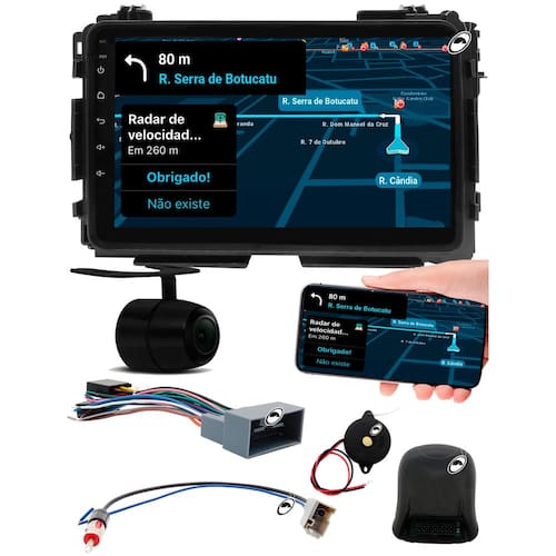 ITENS INCLUSOS: - 1 Multimídia 9 Polegadas; - 1 Interface Comando de Volante; - 1 Moldura de Painel; - 1 Chicote de Ligação; - 1 Chicote de Antena; - 1 Câmera de Ré; - Chicotes de instalação da multimídia; - Manual de instruções.