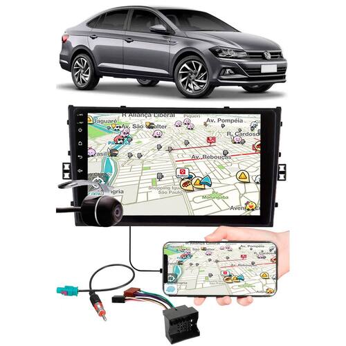 KIT COMBO MULTIMÍDIA 9" POLEGADAS + MOLDURA 2 DIN + CÂMERA DE RÉ PARA VW VIRTUS ----- PRONTO PARA INSTALAÇÃO -----