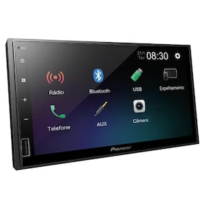Tela de 7" Touchscreen Capacitiva Espelhamento de Smartphone (Android) Bluetooth para Ligações Hands-free e Streaming de Áudio Rádio FM Porta USB Entrada AUX 2 Pares de Saídas RCA Pré-amplificadas Saída de Vídeo para Monitor Traseiro Entrada para Câmera de Ré Entrada para 2° Câmera Entrada para Comando de Volante.