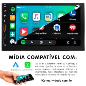 - Espelhamento de celular COM fio via Android Auto e CarPlay, ampliando as opções de entretenimento e funcionalidade do dispositivo.