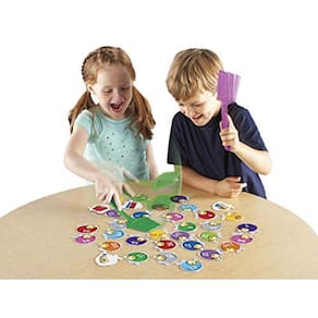 Estas moscas amigáveis estão aqui para ajudá-lo a aprender suas tabelas de multiplicação um swat de cada vez! Transforme as aulas de matemática elementares em um jogo divertido e rápido com a Multiplicação Swat! do Learning Resources. Antes de cada rodada, os jogadores pegam seus matadores coloridos e escolhem a tabela de horários que querem praticar. Em seguida, os jogadores simplesmente definir as moscas, escolher uma equação, e correr para swat a resposta correta primeiro. O jogador que coleciona mais moscas é o vencedor! Cuidado com os obstáculos, porém; de spray de mosca a torrada pegajosa, eles vão ficar no caminho da vitória! Projetado para até quatro jogadores ao mesmo tempo, este jogo fácil de jogar é perfeito para reforçar conceitos de matemática elementares e ajudar as crianças a construir sua confiança com a multiplicação. Multiplicação Swat! inclui 132 moscas coloridas, 4 swatters e um Guia de Atividades com regras e ideias de jogabilidade.