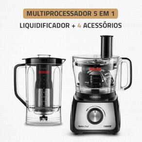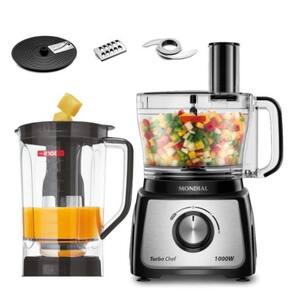 O Multiprocessador modelo MPN-01-B (5 em 1) da Mondial é uma combinação de processador, liquidificador e mais quatro acessórios versáteis para processar, ralar, triturar, fatiar e picar alimentos. O motor, de 1000W de potência, proporciona um alto desempenho na hora de preparar suas receitas.