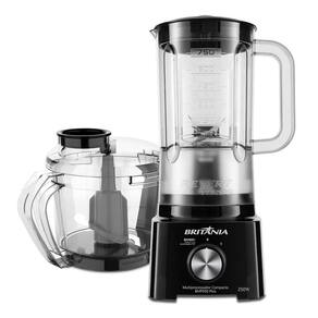 Multiprocessador Compacto Britânia BMP950 Plus 2 em 1 Preto cor: preto voltagem: 110v Multiprocessador Compacto Britânia BMP950 Plus 2 em 1 Movimento Revert Preto O Multiprocessador Compacto Britânia BMP950 Plus é 2 em 1, liquidificador e processador. Ele processa, corta, mistura, pica, moe e liquidifica. Possui Função Revert, a rotação é nos dois sentidos e somado a tecnologia Maxx 6, suas seis lâminas de altíssimo poder de trituração, os alimentos são processados com a maior performance. O Design moderno é mais uma das muitas qualidades que o BMP900 apresenta, compacto e funcional, é tudo que sua cozinha precisa! Características Gerais: - Potência: 250W;- 1 Velocidade;- Função Pulsar;- Função autolimpeza;- 2 em 1: Liquidificador e processador;- Duplo sentido de rotação: Função Revert;- Jarra do Processador com capacidade de 500ml;- Copo do liquidificador com capacidade de 850ml;- Funções: processar, cortar, misturar, picar, moer e liquidificar;- Design moderno e inovador na cor preta;- Design vertical: ocupa menos espaço na cozinha;- Todos os acessórios podem ser lavados na lava-louças;- Copo para liquidificador com alça lateral;- Pés de borracha antideslizantes;- Possui trava de segurança para ambos copos;- Faca cimitarra ou tipo hélice;- Fácil de manusear;- Fácil de limpar;- Porta-fio; Especificações Técnicas: - Altura: 31cm- Largura: 17cm- Profundidade: 21,5cm- Peso: 1,3Kg- Potência: 250W- Consumo: 0,25kW/h- Cor: Preto- Modelo: BMP950 Plus- Fabricante: Britânia Garantia do Fabricante: 1 ano Conteúdo da Embalagem: 01 UN Multiprocessador Compacto Britânia BMP950 Plus 2 em 1 Preto01 UN Manual e certificado de garantia