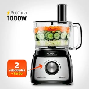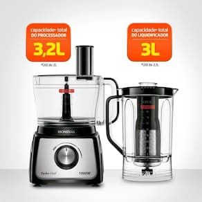 Características Adicionais: Processador 9 em 1: Liquidificador + 8 Acessórios Jarra do Processador de 3,2 Litros Jarra do Liquidificador de 3 Litros + Filtro 8 Acessórios com Lâminas em Aço Inox 2 Velocidades + Função Turbo Peças Removíveis Trava de Segurança + Pés Antiderrapantes BPA Free Armazenamento Compacto