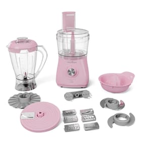 O Multiprocessador Britânia na cor Rosa 220V vai deixar sua cozinha ainda mais completa e funcional. Com 12 funções em um único aparelho, 1000W de potência e 2 velocidades + pulsar, o Multiprocessador Britânia garante que suas receitas sejam preparadas com rapidez e eficiência, seja para picar, triturar, fatiar ou misturar. Os diferentes acessórios que o acompanham, fazem dele um produto completo. As lâminas de corte palito, corte ondulado, ralar fino, granular, fatiar 1,2 mm, ralar e fatiar, juntamente com o disco emulsificador e batedor de massas leves, proporcionam uma infinidade de texturas e cortes dos alimentos. O Multiprocessador Britânia também vem com uma jarra de processador com capacidade de 1,25L, perfeita para preparar quantidades maiores de alimentos. Além disso, acompanha um copo de liquidificador com capacidade total de 2,2L e útil de 1,5L, ideal para receitas líquidas, smoothies, sucos e muito mais. Seja para o preparo de refeições diárias ou de ocasiões especiais, conte com Multiprocessador 12 em 1 Rosa.