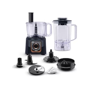 Multiprocessador e liquidificador 2 em 1 com 700W de potência e 24 funções. Inclui 2 velocidades, botão pulsar e design compacto.Acessórios