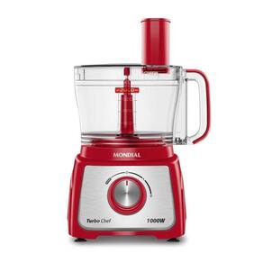Multiprocessador Mondial Turbo Chef 5 em 1 - MPN-01-R 127V Para que você vivencie a culinária dia a dia e tenha produtos com ótimo desempenho, design diferenciado e que traga rapidez e versatilidade ao preparar seus alimentos, a Mondial trouxe o Processador Turbo Chef, que será seu aliado na cozinha. Confira os detalhes: Características:EAN: 7899882315646Marca: MondialModelo: MPN-01-RCor: VermelhoVoltagem: 127VPotência: 1000W2 Velocidades + Função TurboPés AntiderrapantesCopo com 3 Litros + FiltroCapacidade: - Liquidificador 3 Litros- Processador 3,2 Litros5 em 1:- Processador- Liquidificador- Ralador- Fatiador- PicadorAcompanha:- Lâmina Picadora- Lâmina Raladora- Lâmina Fatiadora Dimensões da Embalagem:Altura: 39cmLargura: 47cmProfundidade: 26cmPeso: 3,700KgGarantia: 12 Meses Ean: 7899882315646