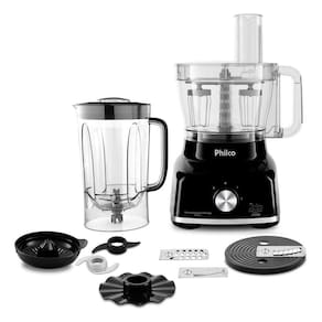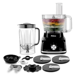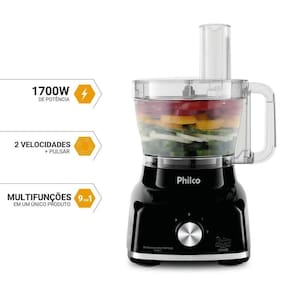 O Multiprocessador Philco 1700W 9 em 1 Preto PMP1600P vai surpreender você! Ele tem 1700W de potência, bate, tritura, liquidifica e espreme com perfeição.
